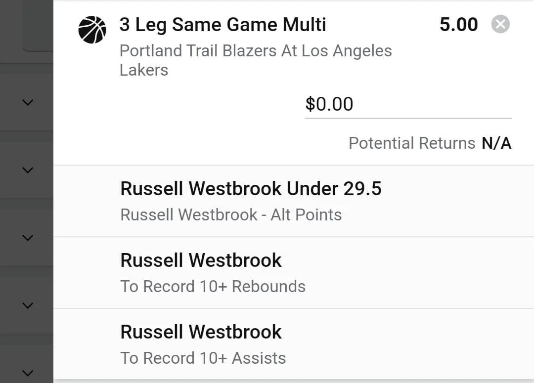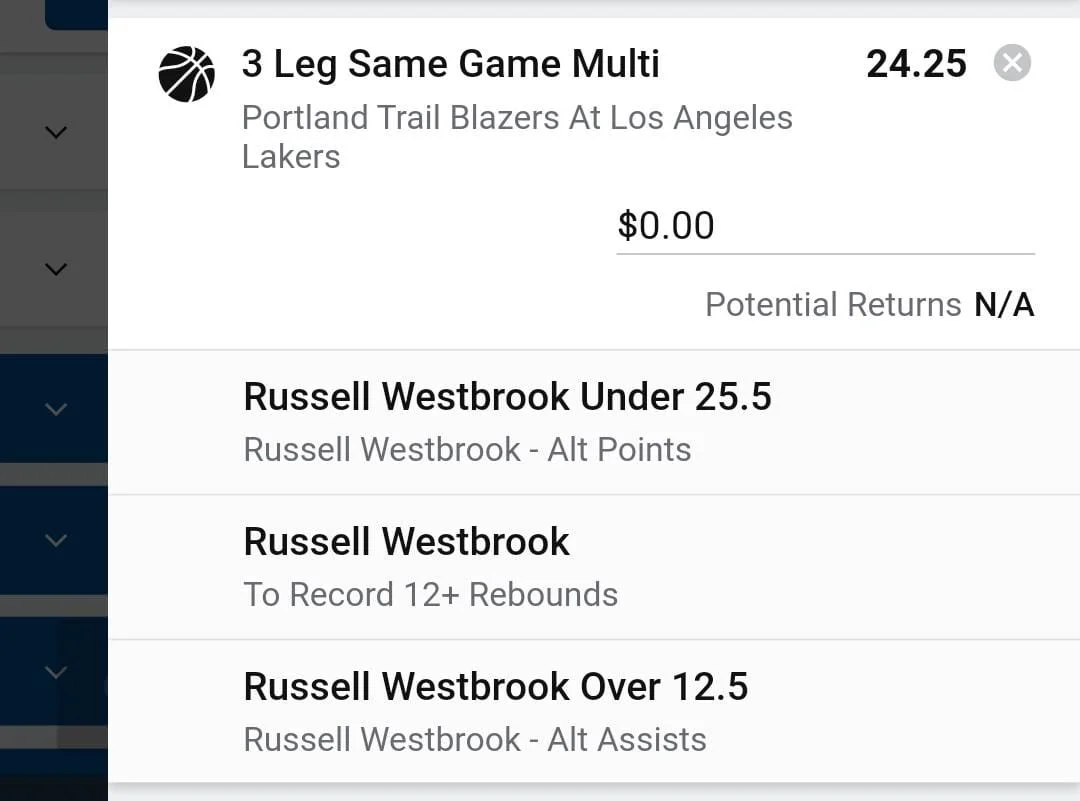 This is an expansion on the above bet. This is a line Russ has hit 3 games this season and 13 games over the past 2 seasons. If there's a guy in the NBA capable of a game like this it's the brodie and I like the value we're getting here against a Trailblazers team ranked 28th in the NBA in Drtg. Go the brodie 🔥🔥🔥