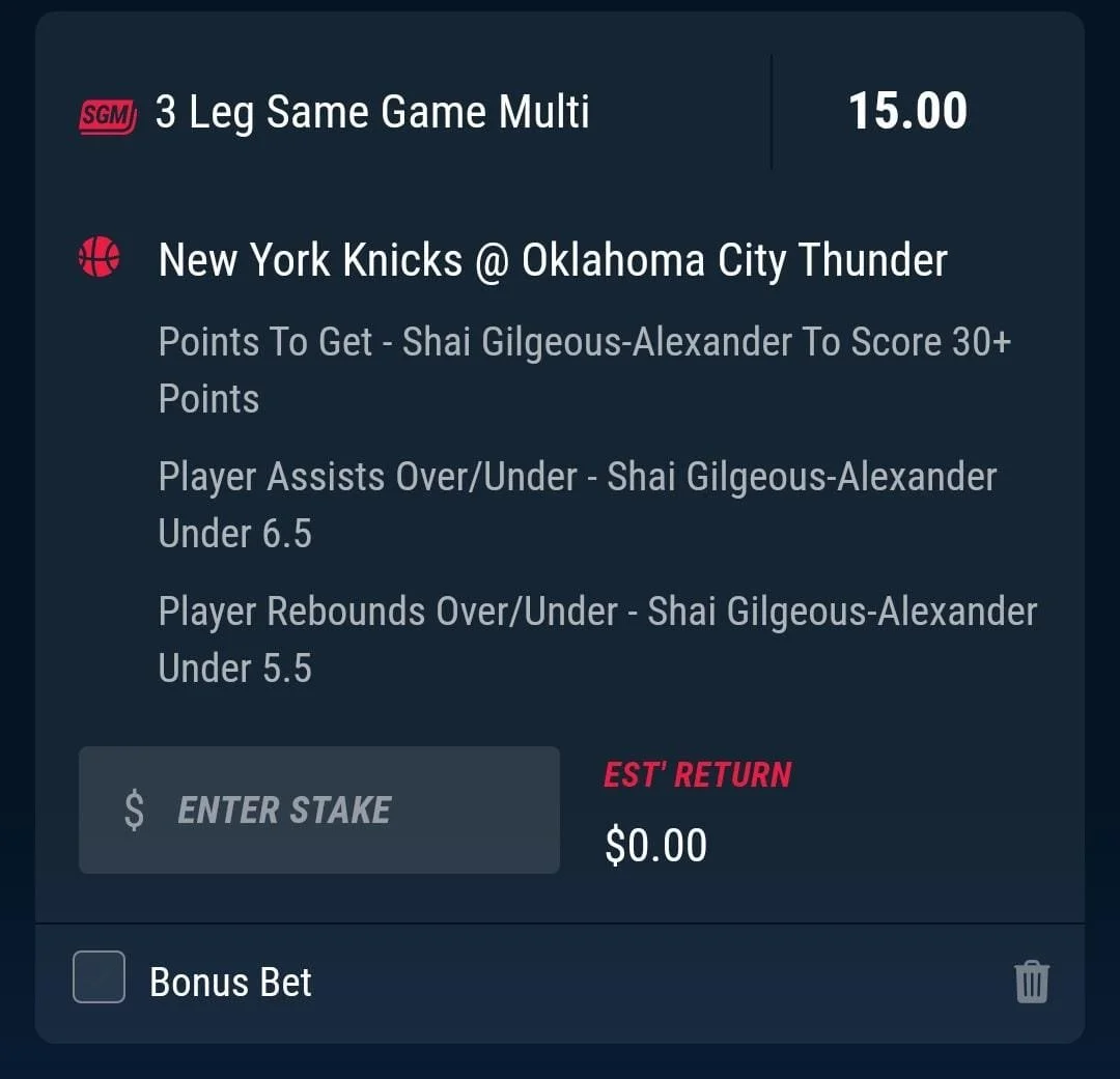 I like SGA here up against a Knicks team ranked 17th in the NBA in Drtg. He's hit this line in 5 games this season including 3 in his last 10. Let's make it 4. Go SGA 🔥🔥🔥