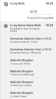 Sabonis x Brogdon 1 unit. They've hit this line together in 10 games of the past 58 they're played together. There's strong data to suggest that when Malcolm scores well Domantas performs solidly and vice versa. Go Pacers 🔥🔥🔥