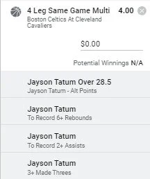 Similar play to yesterday Jayson went extremely close to. Today he faces the Cavs who are a little less well equipped to defend him. Last season he averaged 29ppg in 2 contests against the Cavs. This season the Cavaliers are improved defensively but I still think Jayson has a great shot at this line, especially with Jaylen Brown out. Go Jayson 🔥🔥🔥