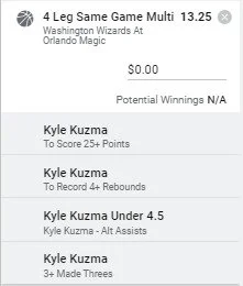 Kyle has hit this line in 1 game this season and 8 games over the past 2 seasons. The reason I like this bet today is there is no Bradley Beal in the lineup. That's and extra 20+ FGA to share around and I think Kuzma will see some of the shots. Add to that the Orlando Magic haven't been great defending the Power Forward and it's a nice mix. Go Kuz 🔥🔥🔥