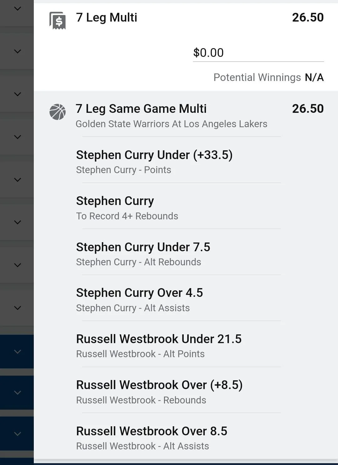 7 Leg Combo Same Game Multi - Steph Curry x Russell Westbrook.