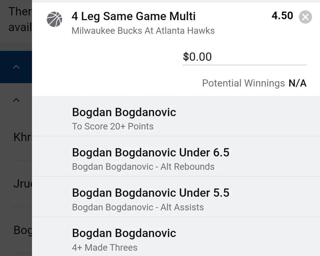 Bogdan x Khris x Jrue combination multi 1 unit. Take odds over $26.50