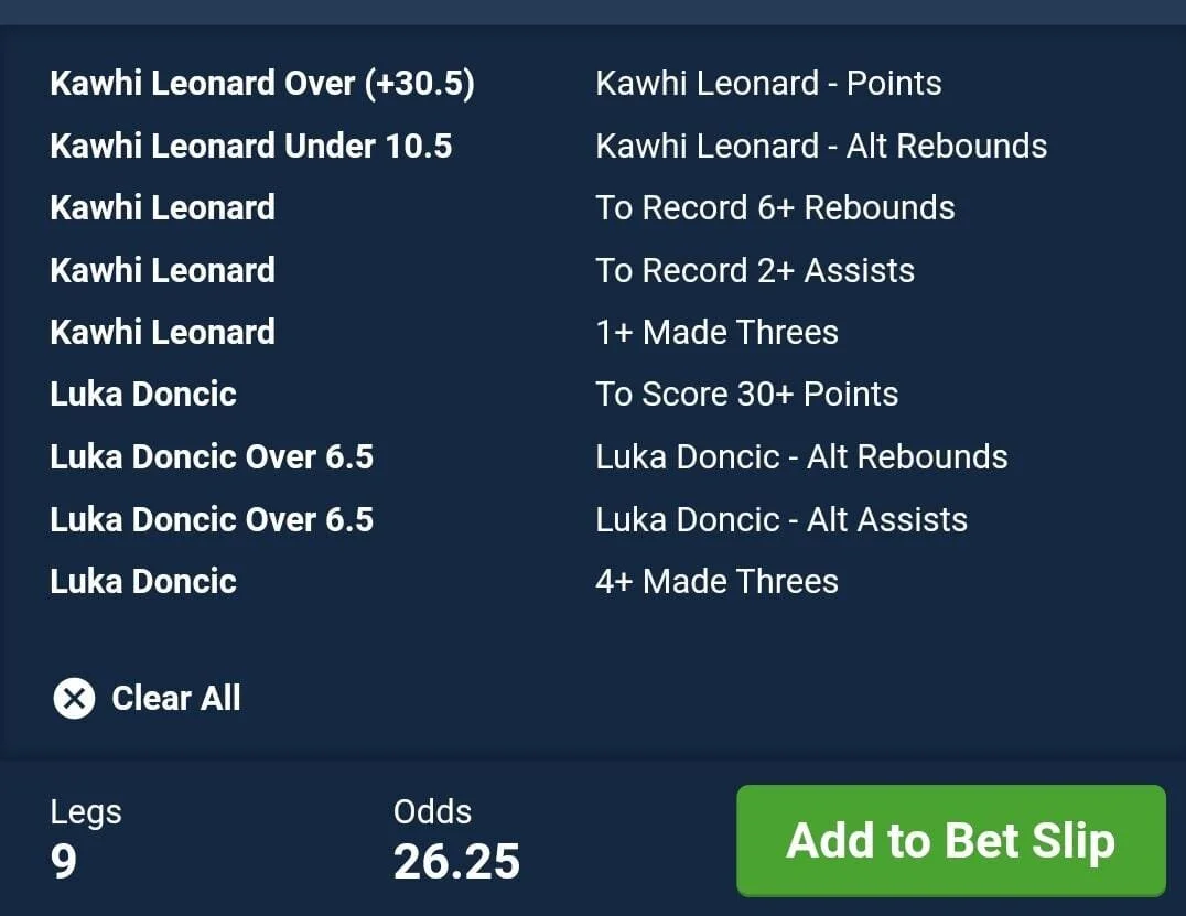 Kawhi x Luka 1 unit. Take odds over $11.5, Best Book Sportsbet