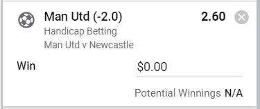 Man United -2.5 - Stake 1 Unit, Minimum Odds 2.35, Best Book - Sportsbet
