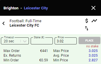 Leicester Win - Stake 1.5 Units, Minimum Odds 2.7, Best Book - Sportsmarket