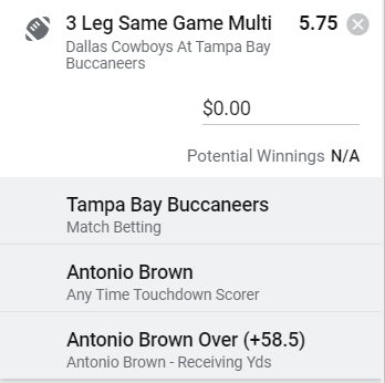 Bucs SGM - Stake 1 Unit, MInimum Odds 5.0, Best Book - Sportsbet