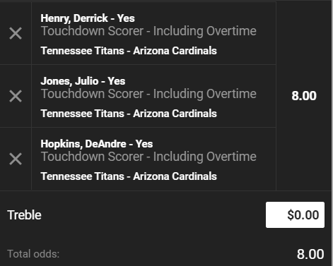 Cardinals/Titans SGM - Stake 1.5 Units, Minimum Odds 6.6, Best Book - UNIBET