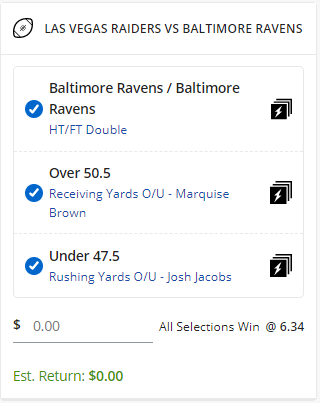 Ravens SGM - Stake 1.5 Units, Minimum Odds 5.0, Best Book - Lads/Neds