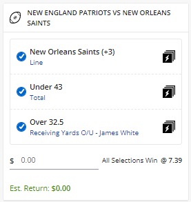 Saints/Patriots SGM - Stake 1 Unit, Minimum Odds 6.3, Best Book - Lads/Neds