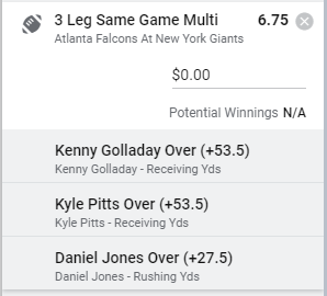 Giants/Falcons SGM - Stake 1 Unit, Minimum Odds 5.6, Best Book - Sportsbet