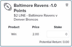 Ravens -1 - Stake 2 Units, Minimum Odds 1.9, Best Book - Topsport