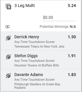 Gameday Touchdown Multi - Stake 1 Unit, Minimum Odds 4.5, Best Book - Sportsbet