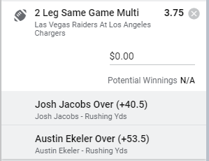 MNF Rushing SGM - Stake 1.5 Units, Minimum Odds 3.2, Best Book - Sportsbet