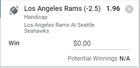 Rams -2.5 - Stake 2 Units, Minimum Odds 1.9, Best Book - Sportsbet