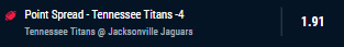 Titans -4 - Stake 2.5 Units, Minimum Odds 1.88, Best Book - Pointsbet