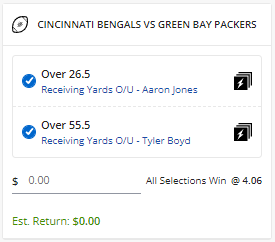 Bengals/Packers SGM - Stake 1.5 Units, Minimum Odds 3.5, Best Book - Lads/Neds