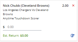 Nick Chubb Anytime Touchdown - Stake 3 Units, Minimum Odds 1.88, Best Book - Lads/Neds