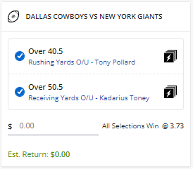 Cowboys/Giants SGM - Stake 1.5 Units, Minimum Odds 3.3, Best Book - Lads/Neds