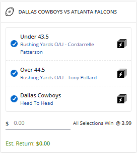 Cowboys/Falcons SGM - Stake 1 Unit, Minimum Odds 3.6, Best Book - Lads/Neds