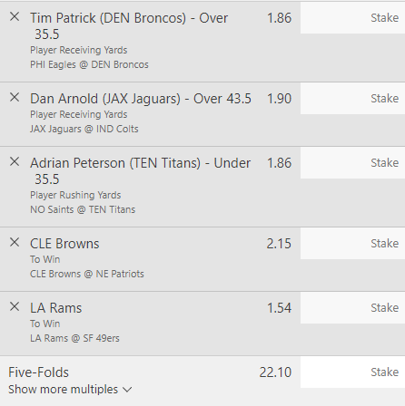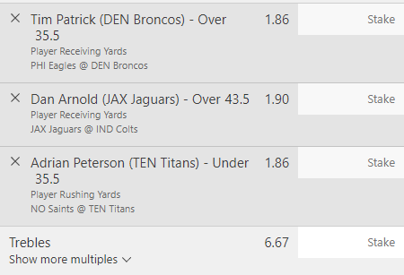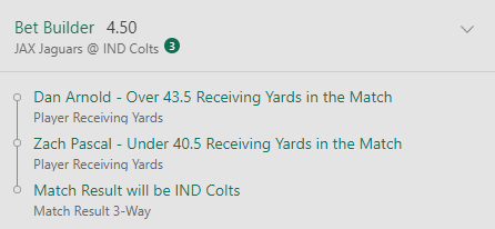 Jaguars/Colts SGM - Stake 1 Unit, Minimum Odds 3.7, Best Book - BET365