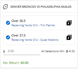 Broncos/Eagles SGM - Stake 1.5 Units, Minimum Odds 3.5, Best Book - Lads/Neds