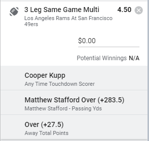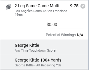 49ers SGM - Stake 0.5 Units, Minimum Odds 7.5, Best Book - Sportsbet