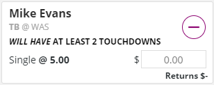 Mike Evans 2+ Touchdowns - Stake 1 Unit, Minimum Odds 3.5, Best Book - Topsport