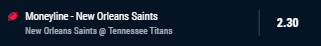 Saints/Titans SGM - Stake 1 Unit, Minimum Odds 5.5, Best Book - BET365