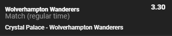 Wolves Win - Stake 2 Units, Minimum Odds 3.0, Best Book - UNIBET
