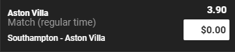 Aston Villa Win - Stake 1.5 Units, Minimum Odds 3.6, Best Book - UNIBET
