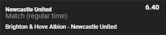 Newcastle Win - Stake 1 Unit, Minimum Odds 5.6, Best Book - UNIBET