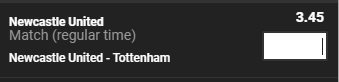 Newcastle Win - Stake 1.5 Units, Minimum Odds 3.1, Best Book - UNIBET
