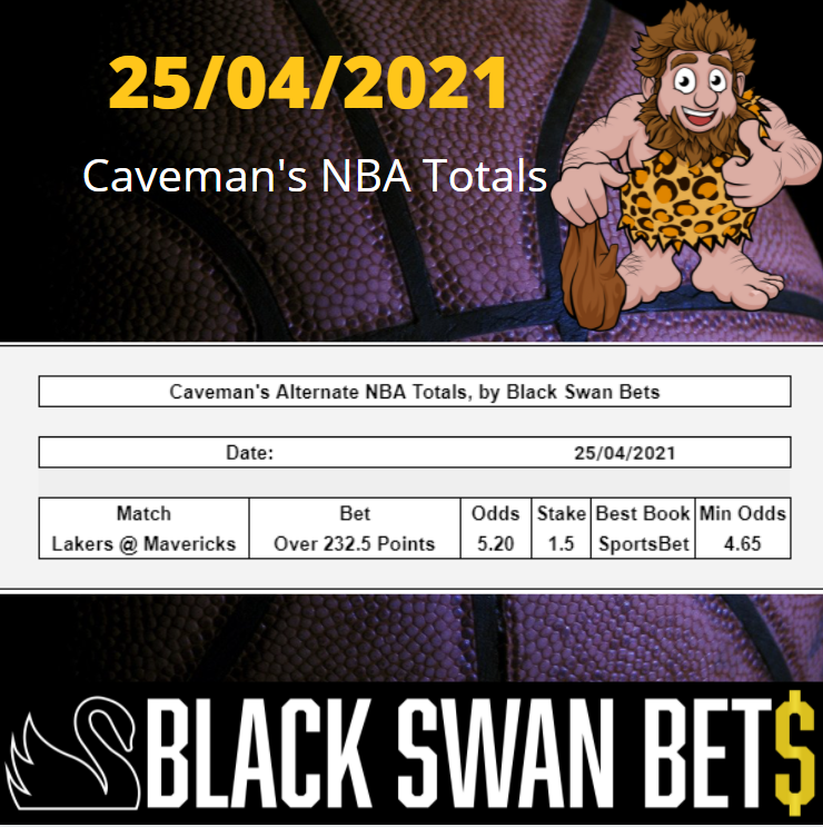 Good morning team!! We just have the one play on the slate today. We got close in this one on Friday after being let down by a poor 4th quarter. Were getting back after it again as we still hold a nice EV. Enjoy the game team. Cheers, Caveman!!