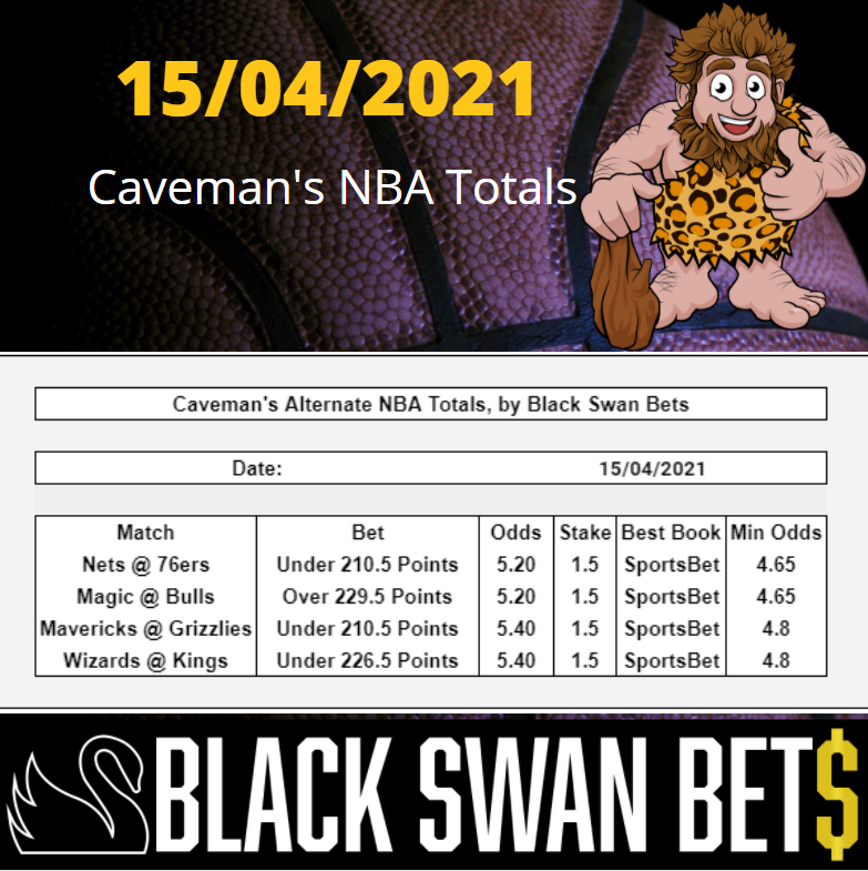 Were back to the 4 pack again today team on the big slate. Make sure to go by minimum odds if your not using Sportsbet. Enjoy the games team, and have a great day!! Cheers, Caveman!!