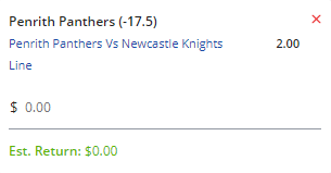 Panthers -17.5, Stake 2.5 Units, Minimum Odds $1.90