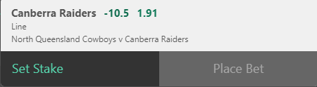 Canberra -10.5, Stake 2.5 Units, Minimum odds $1.90