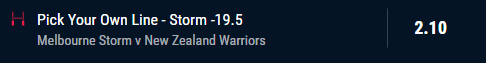 Storm -19.5 Alternative Line (pick your own line), Stake 2 Units, Minimum Odds $1.90, Best Odds Pointsbet