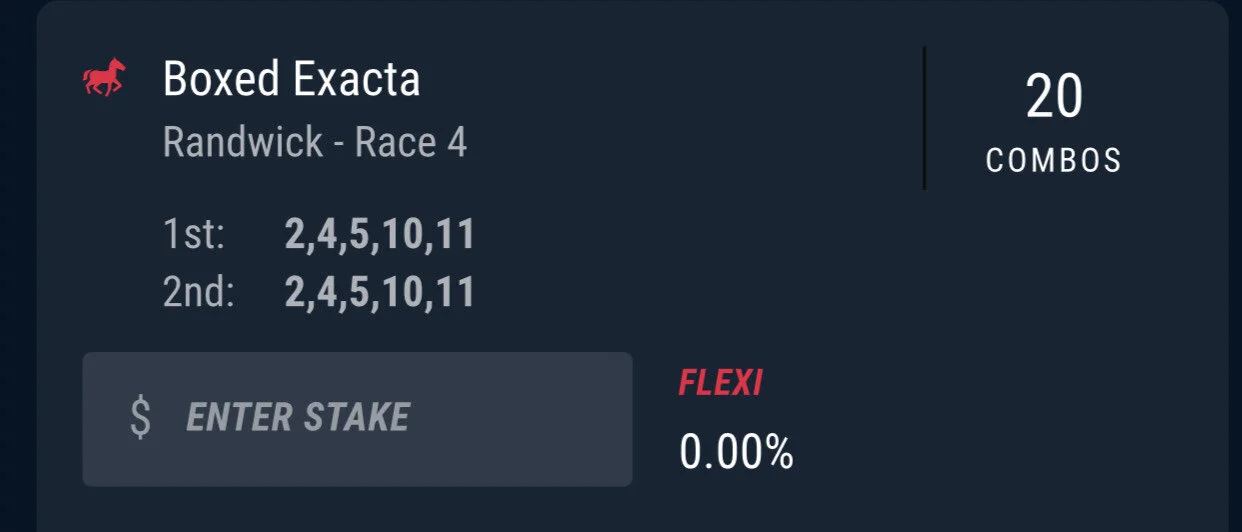 Race 4 - Exacta - Stake 2 Units - Best Book Pointsbet