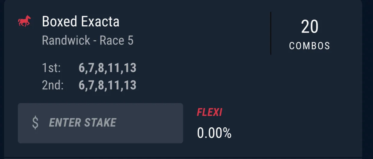 Race 5 - Exacta - Stake 1.5 Units - Best Book Pointsbet
