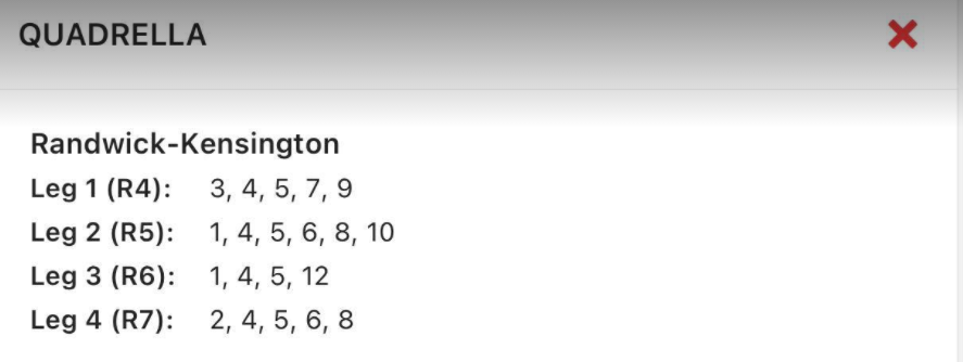 Randwick Quaddie - Stake 2 Units, Best Book - Any