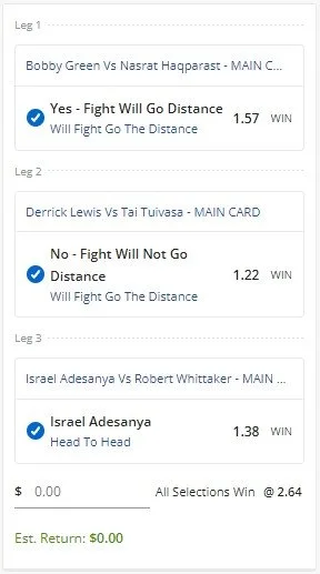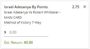 Israel Adesanya by Decision - Stake 2 Units, Minimum Odds 2.3, Best Book - Lads/Neds