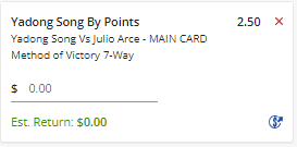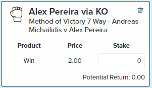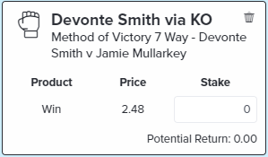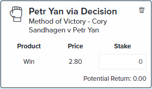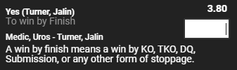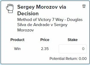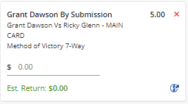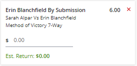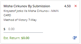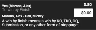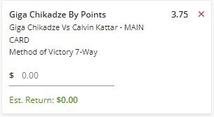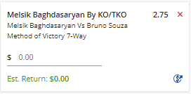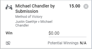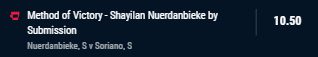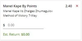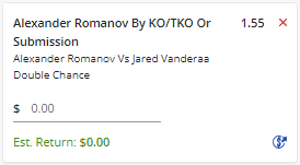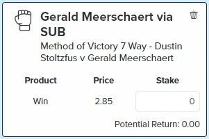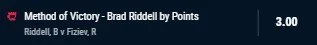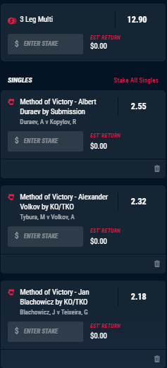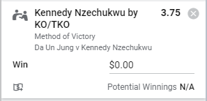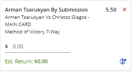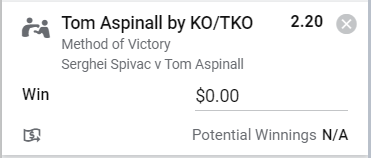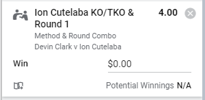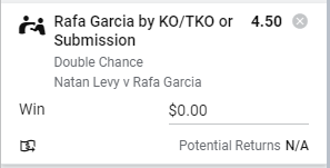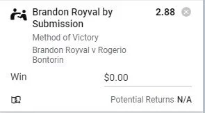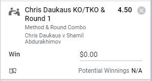 Denys Bondar Double Chance, KO/TKO or Sub - Stake 2.5 Units, Minimum Odds 1.85, Best Book - Sportsbet