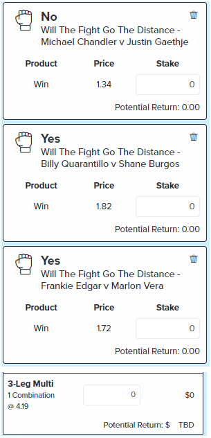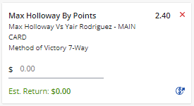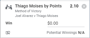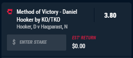 Edson Barboza by Points - Stake 1.5 Units, Minimum Odds 3.3, Best Book - Lads/Neds