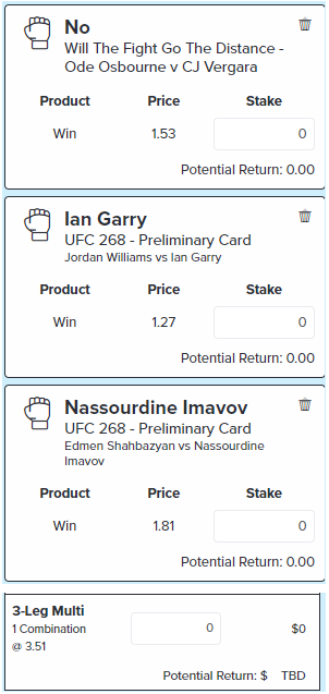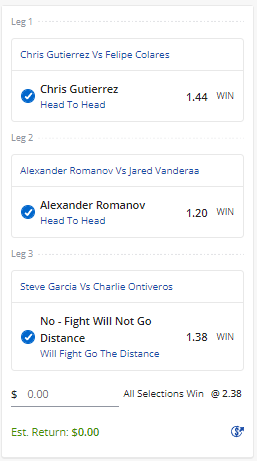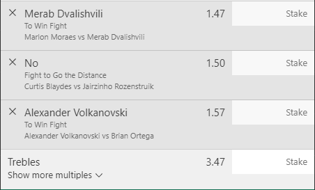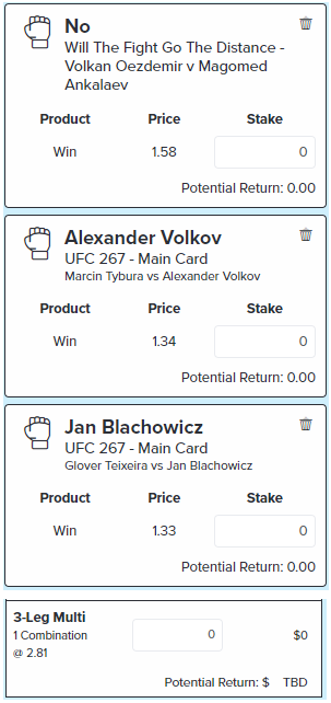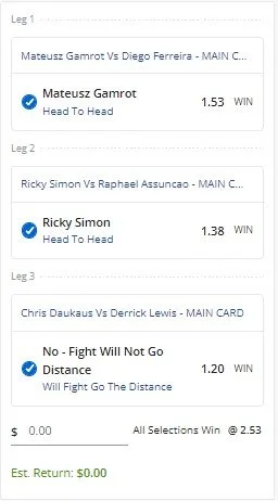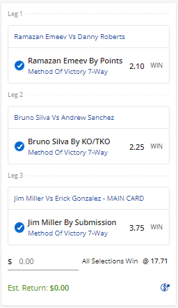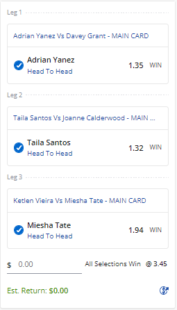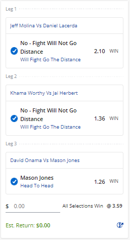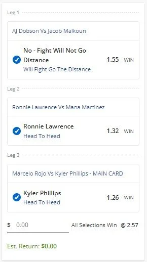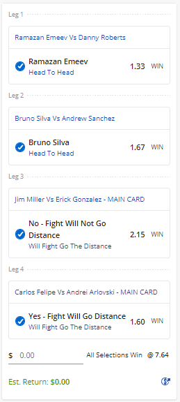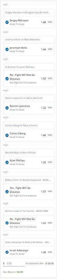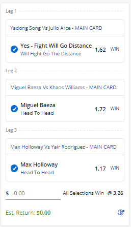 Main Card Multi - Stake 1.5 Units, Minimum Odds 3.2, Best Book - Pointsbet