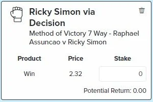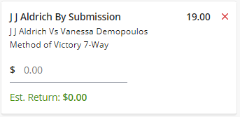 JJ Aldrich by Submission - Stake 0.5 Units, Minimum Odds 14, Best Book - Lads/Neds
