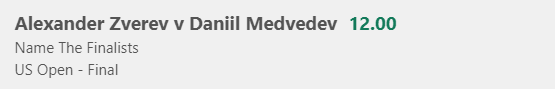 Name the Finalists, Zverev/Medvedev - Stake 1 Unit, MInimum Odds 10, Best Book - BET365
