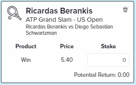 Ricardas Berankis Win - Stake 1 Unit, Minimum Odds 4.5, Best Book - Topsport