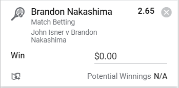Brandon Nakashima Win - Stake 2 Units, Minimum Odds 2.3, Best Book - Sportsbet