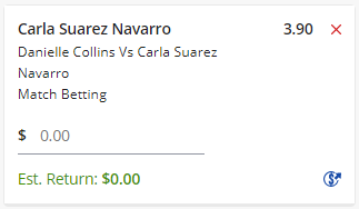 Carla Suarez Navarro Win - Stake 1 Unit, Minimum Odds 3.4, Best Book - Lads/Neds